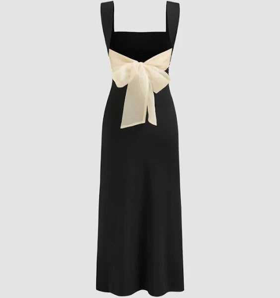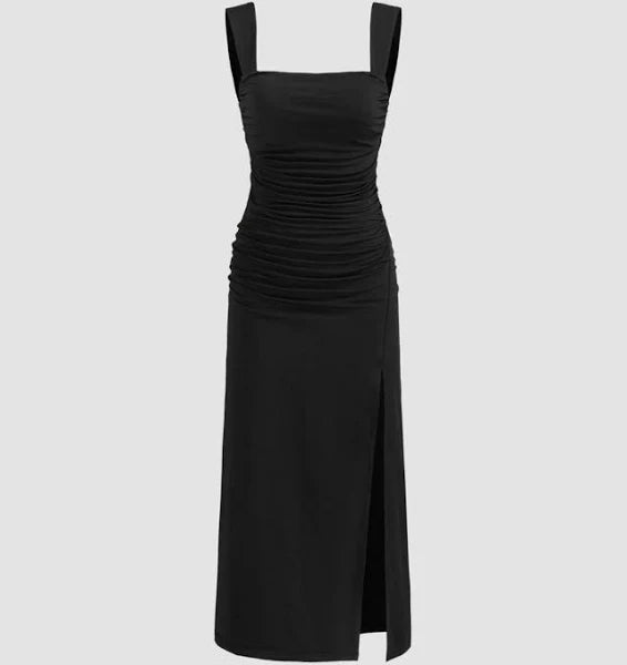 India Square Neck Ruched Split Bowknot Maxi Dress