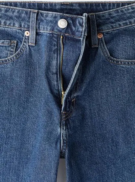This pair of jeans features a flattering slim straight-leg silhouette crafted from cotton denim with a hint of stretch for all-day comfort. Designed with a high-rise waist, classic 5-pocket style, and secure zip fly with button closure, it offers clean lines and versatile wear. The length is tailored to fall just at the top of the foot with minimal stacking—creating a timeless look that pairs seamlessly with both flats and heels. Made with 99% cotton and 1% elastane, and containing 19% recycled cotton and 2% recycled polyester, these jeans merge comfort with sustainable appeal.