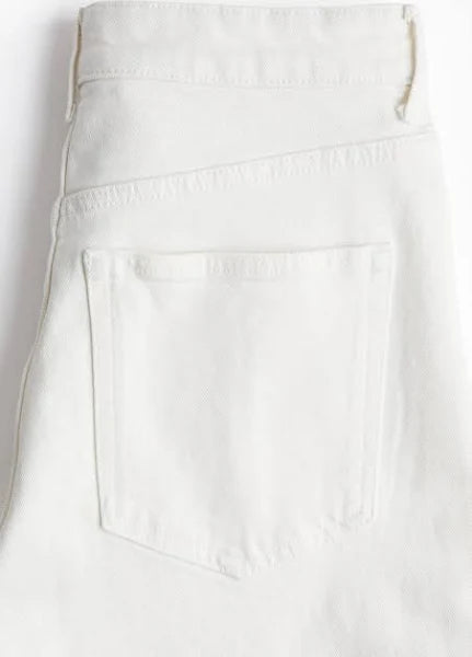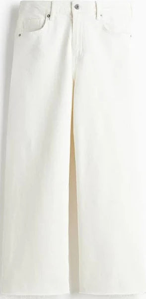 This pair of jeans features a flattering high-rise waist and a modern wide-leg silhouette that falls gracefully to ankle length. Crafted from slightly stretchable cotton denim with a hint of elastane, they ensure comfort while maintaining structure. The classic 5-pocket design and clean zip-fly closure make them timelessly wearable, available in a crisp white shade. Plus—they’re eco-conscious, made with at least 9% recycled cotton.